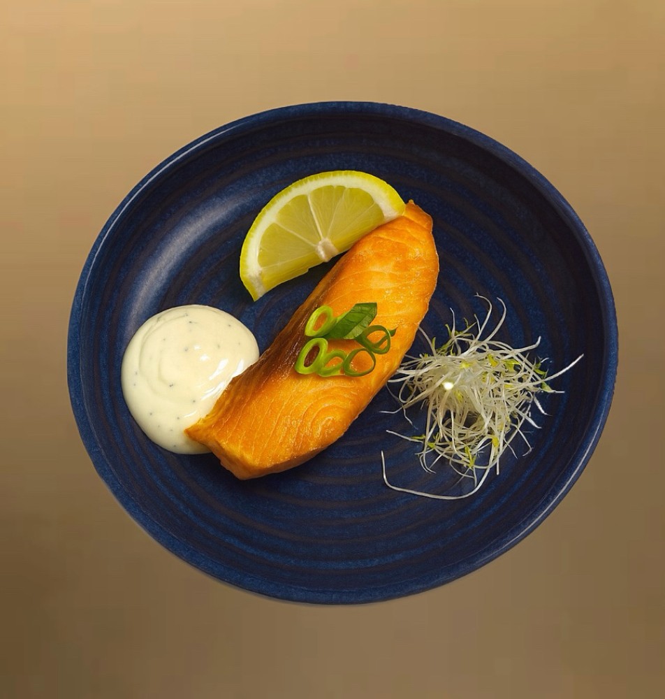 Vers gefileerde zalm met eigengemaakte romige knoflooksaus