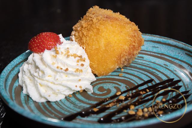 Goudbruine sesamballen, krokant van buiten en gevuld met zachte, zoete rodebonenpasta
