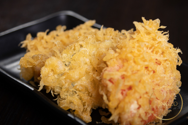 Gefrituurde garnaal rol met gerookte paling en gekookte garnalen