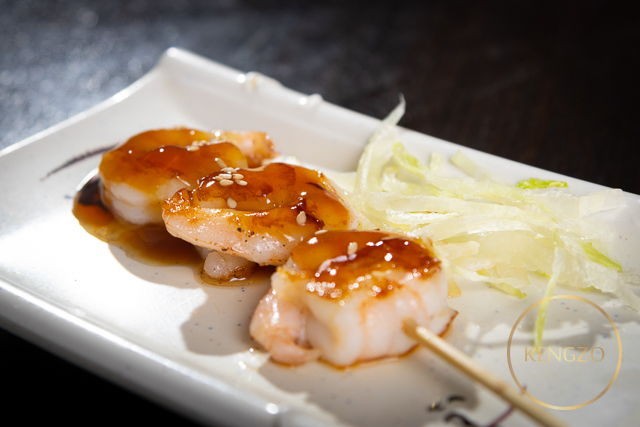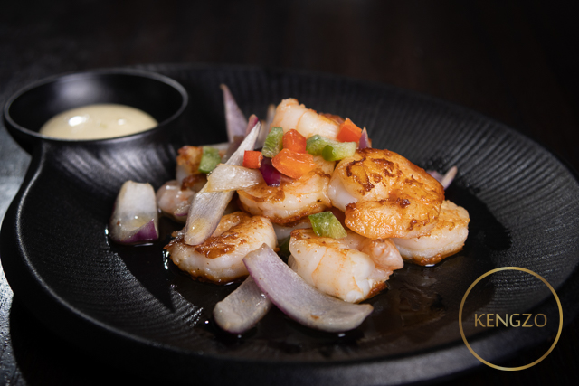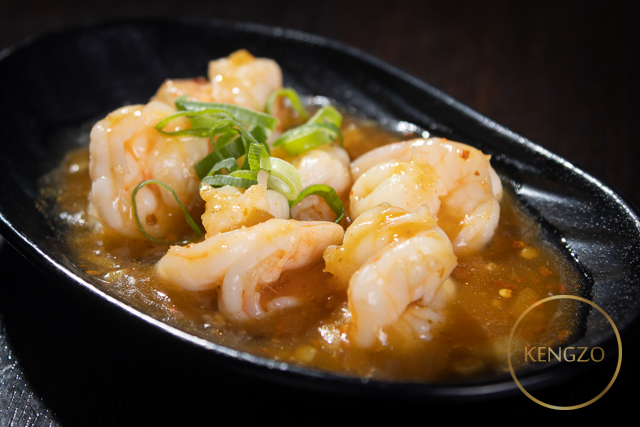 Gamba’s in lichte sojasaus met huisgemaakte knoflookdip